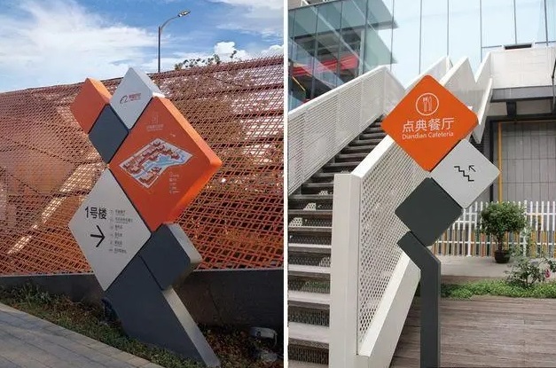 3)突形标牌:建筑物的墙面上突出,除了反面以外,标牌的正面和侧面都可以被利用为广告载体的标牌。